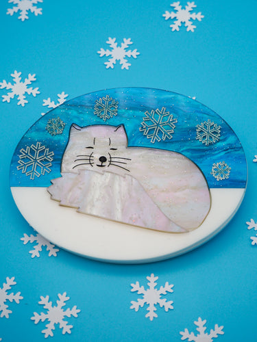 Arctic Fox Acrylic Brooch